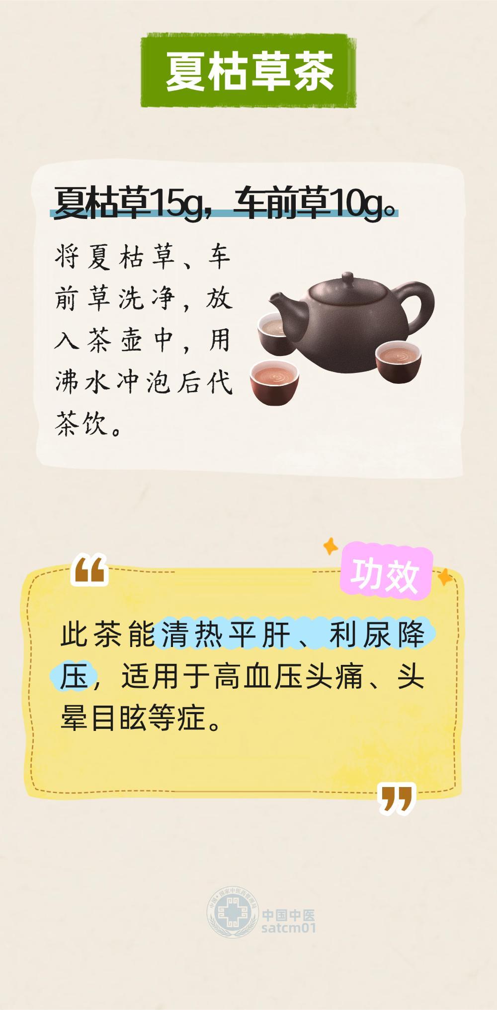 應該注意的是,高血壓病的病因病機比較複雜,常多種病理因素同時存在。因此,以下代茶飲建議在專業醫師指導下適量、搭配使用。在日常生活中,高血壓病患者還應注意減輕體重、減少鈉鹽及脂肪攝入、戒菸酒、增加運動、減輕精神壓力、保持心態平衡等。